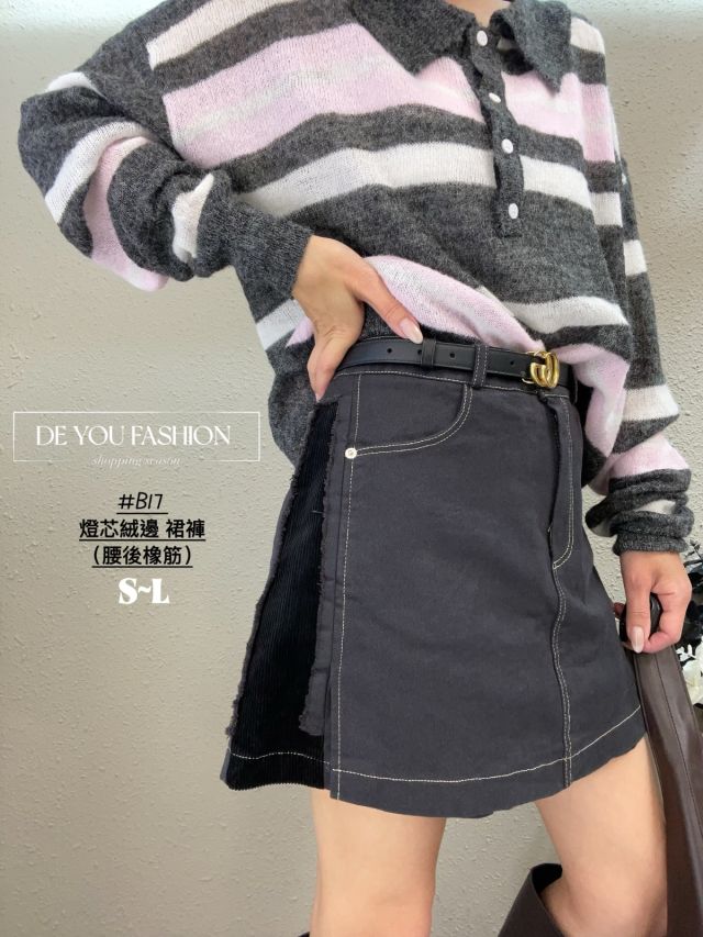 燈芯絨邊 裙褲 ~腰後橡筋(直播價)