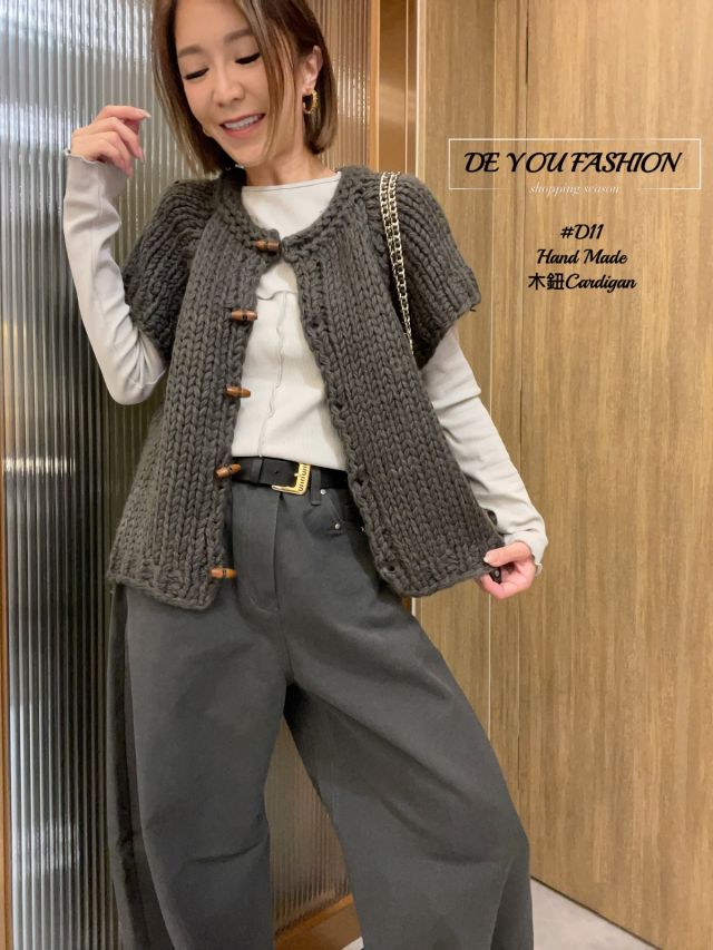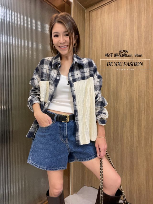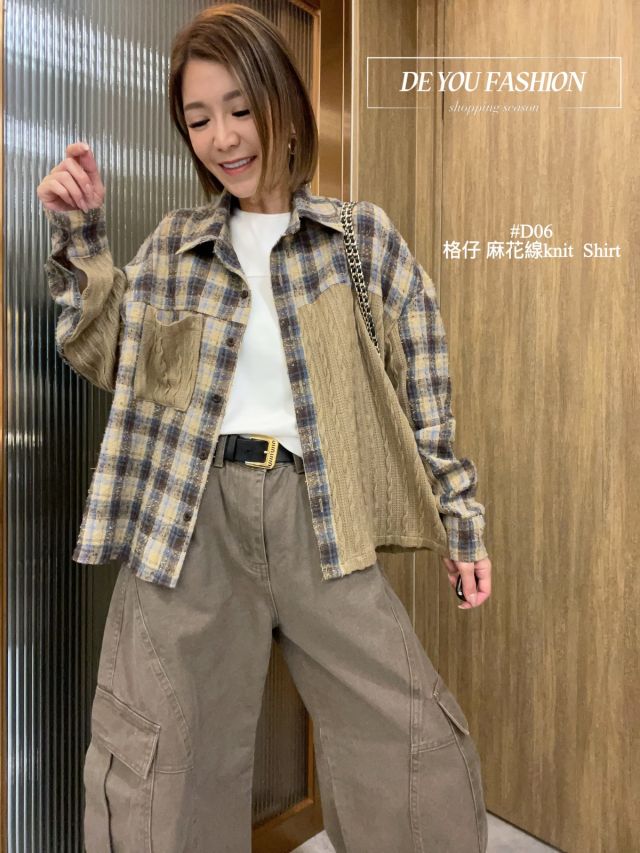 D06 格仔麻花線Knit Shirt-(卡其) (直播價)