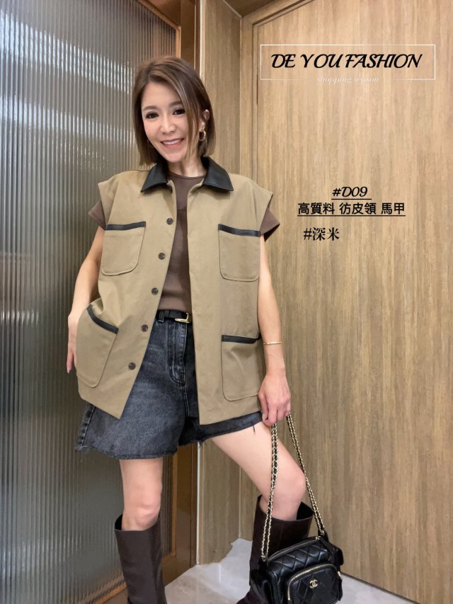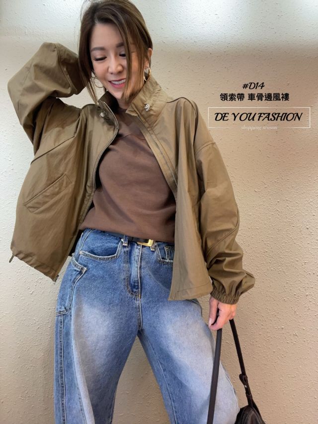 皮領 洗水卡其色 牛仔料jacket (內間棉)