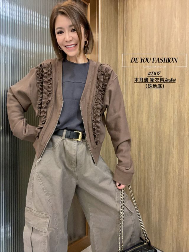 木耳邊 衛衣料Jacket -BROWN (珠地底)