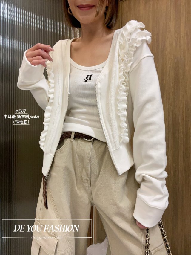 木耳邊 衛衣料Jacket- WHITE (珠地底)