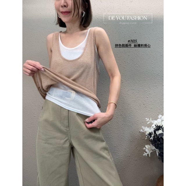 H25 (杏) 拼色假兩件 絲襪料背心(直播價)