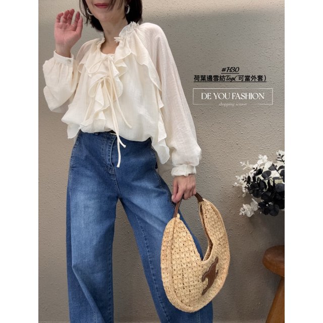H30 (米色) 荷葉邊雪紡Top(可當外套)(直播價)