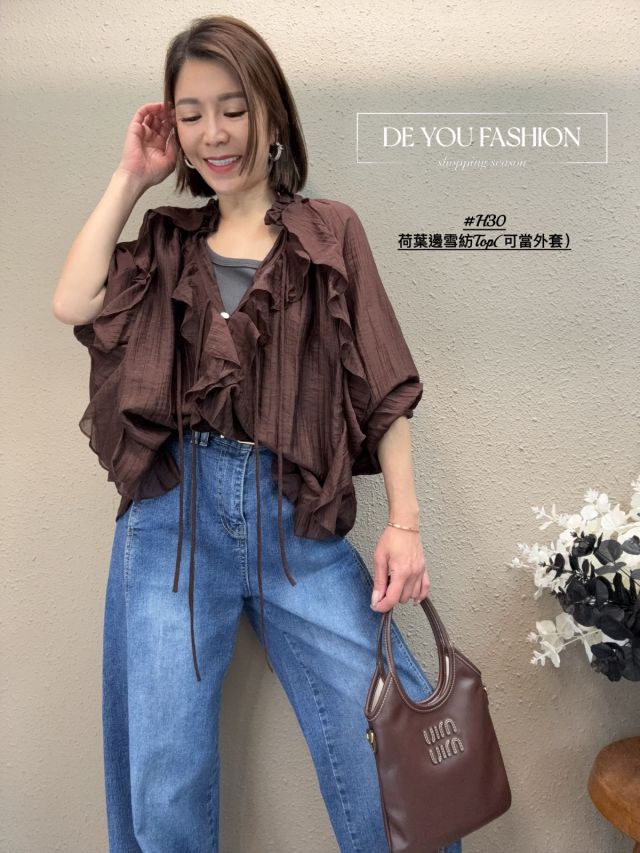 G30 (啡) 荷葉邊雪紡Top(可當外套)(直播價)