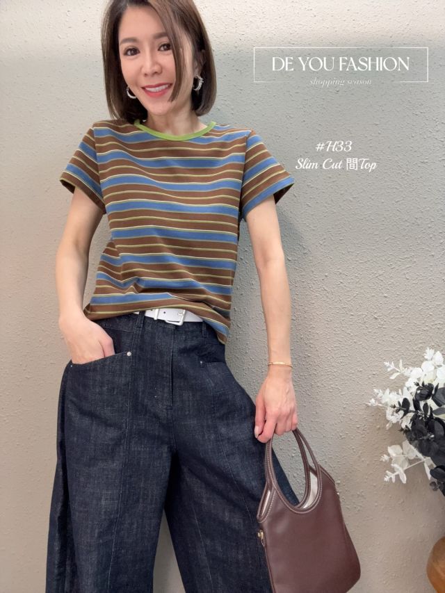 H33 (啡綠間)Slim Cut 間Top(直播價)