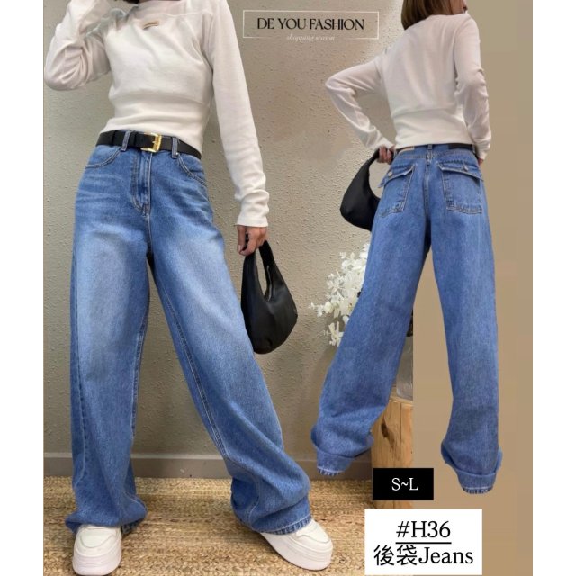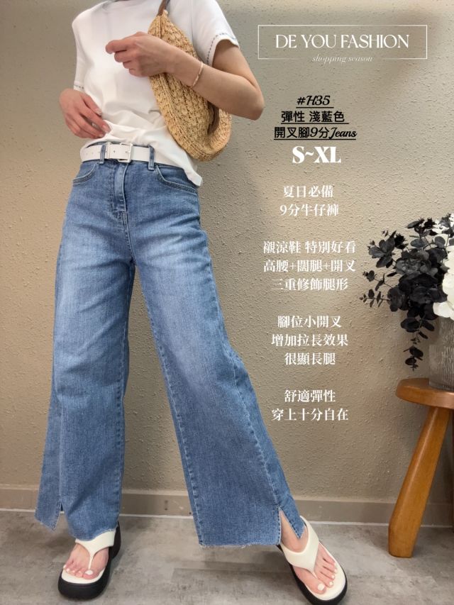 H35 彈性 淺藍色 開叉腳9分Jeans(直播價)