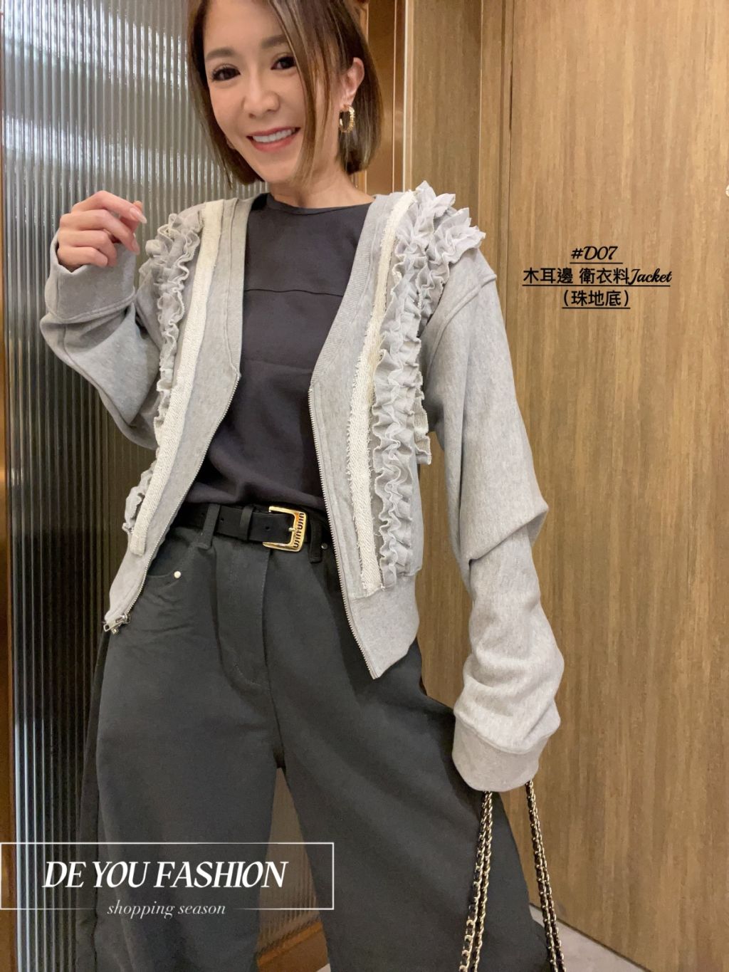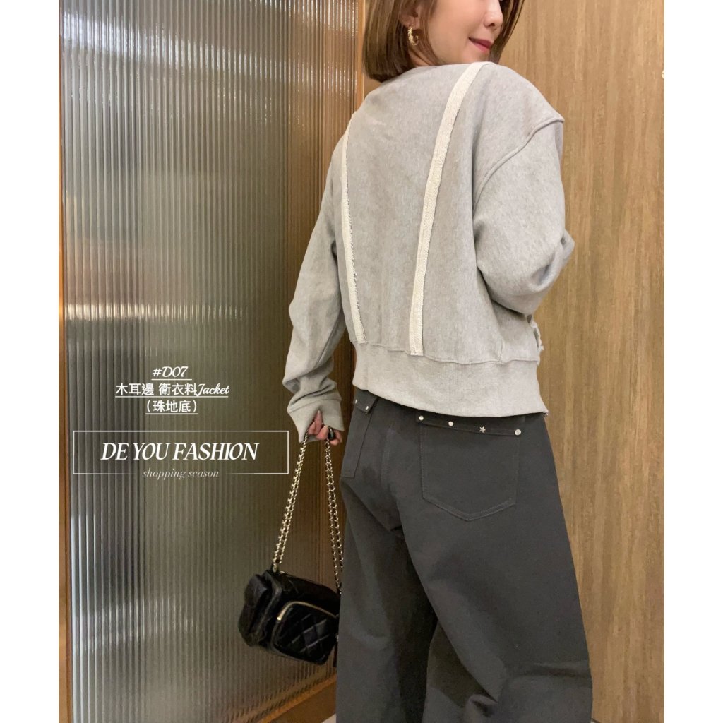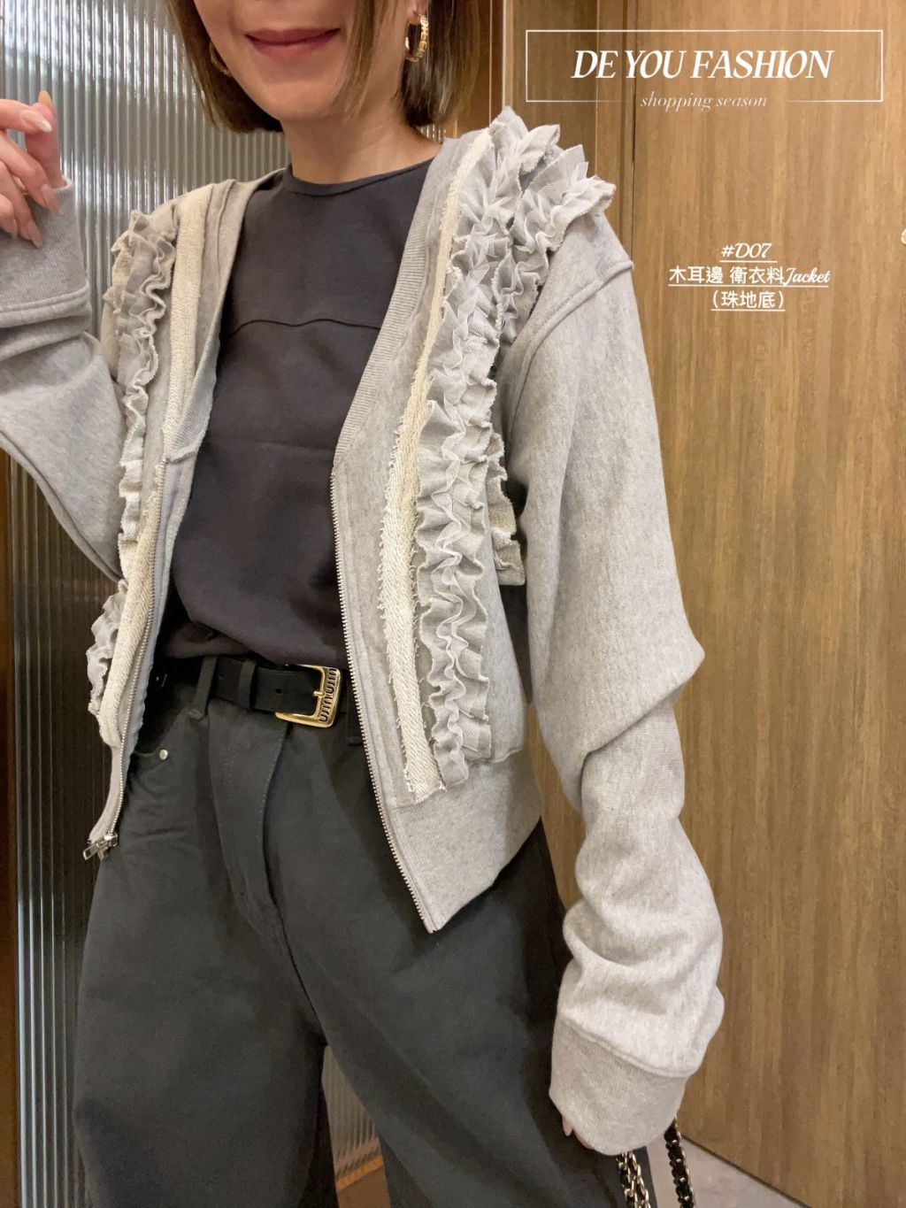 木耳邊 衛衣料Jacket ~花灰色(珠地底)