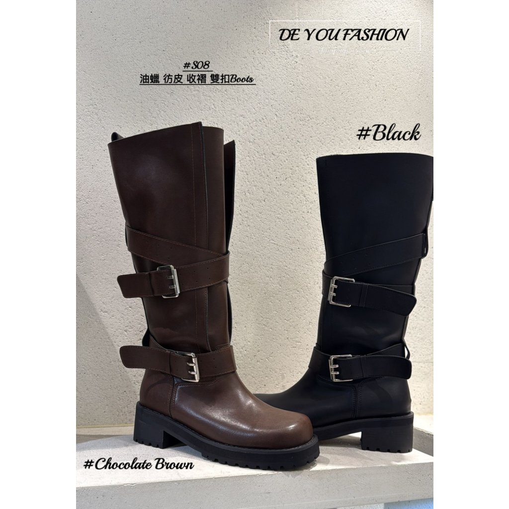 S08 油蠟 彷皮 收褶 雙扣Boots