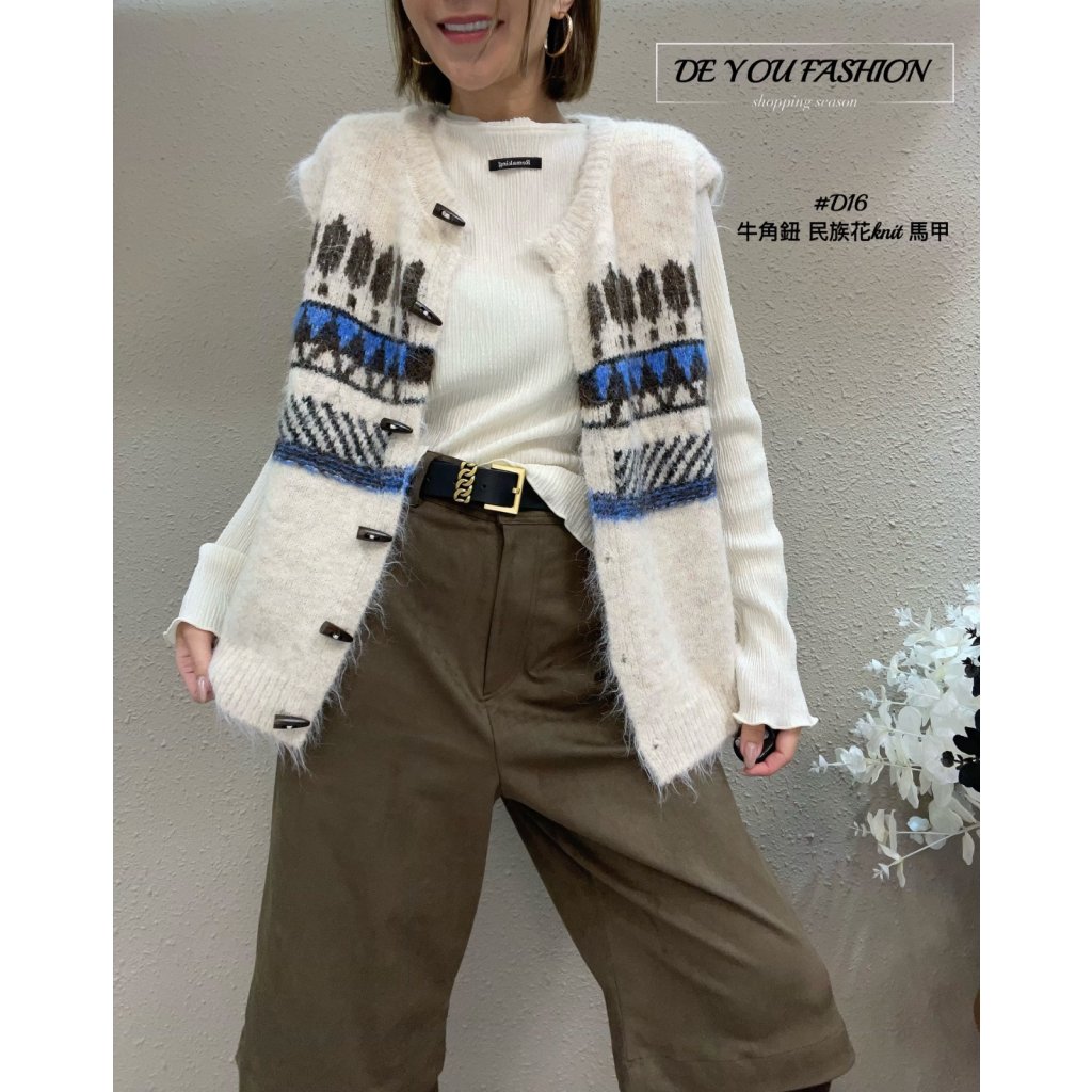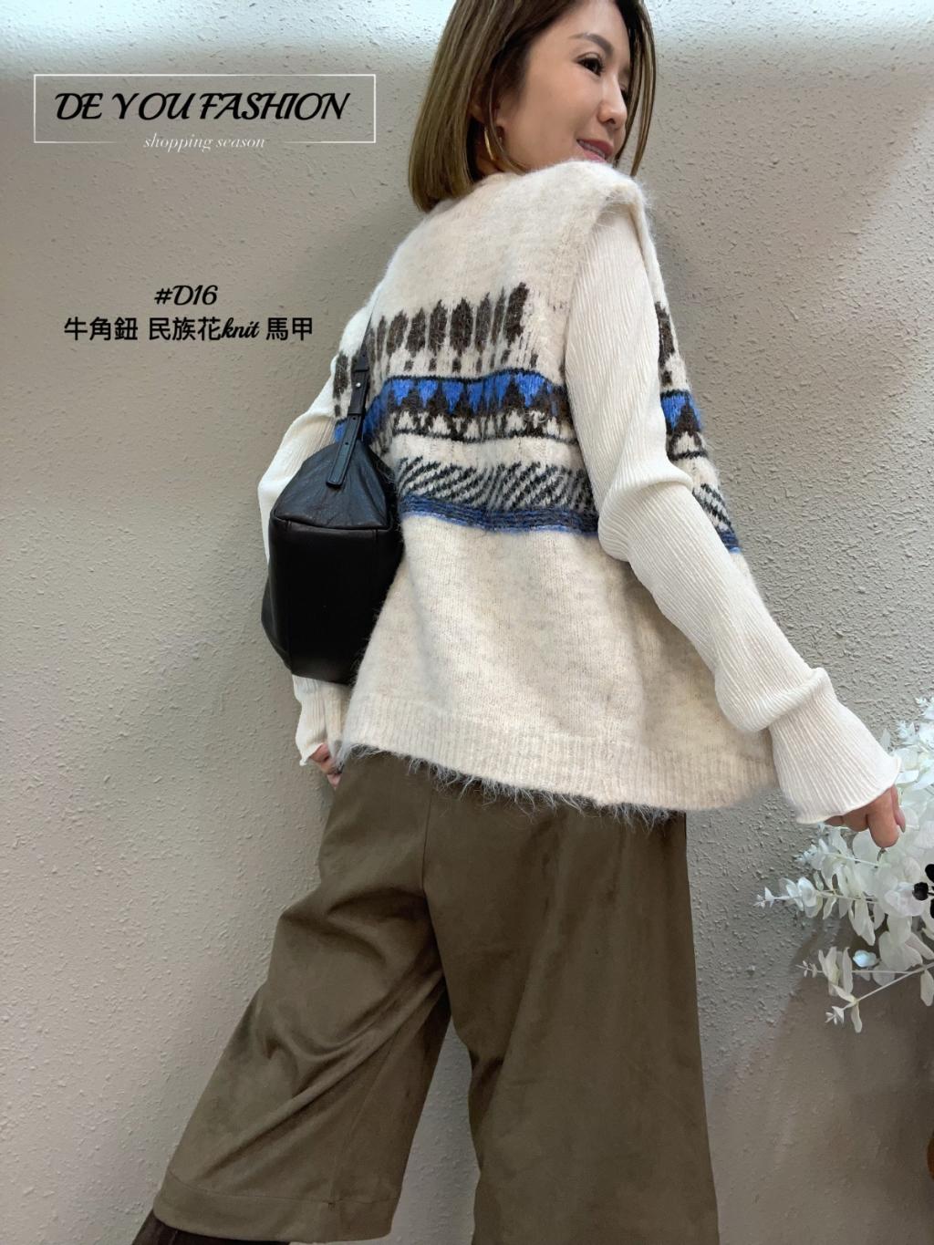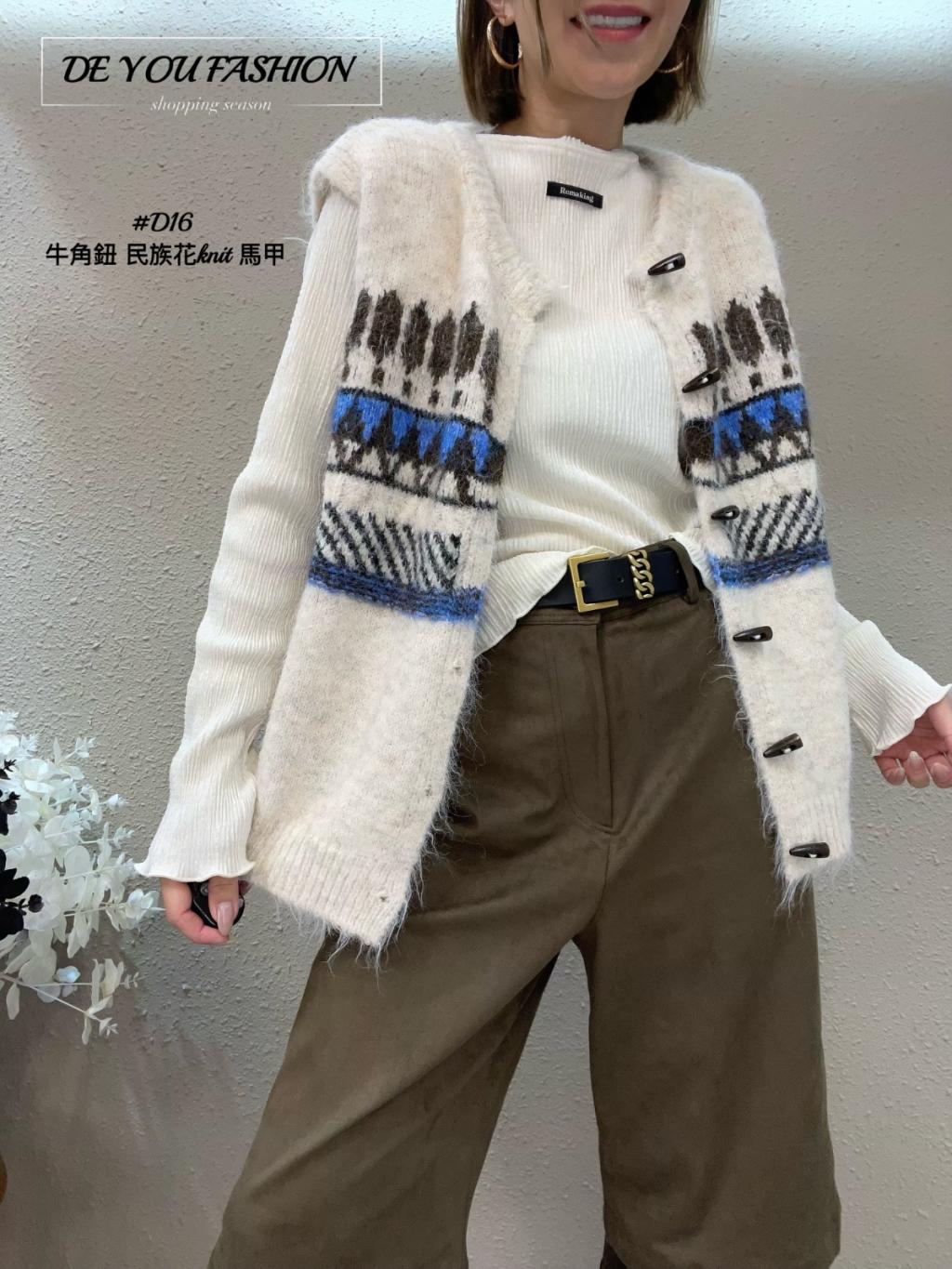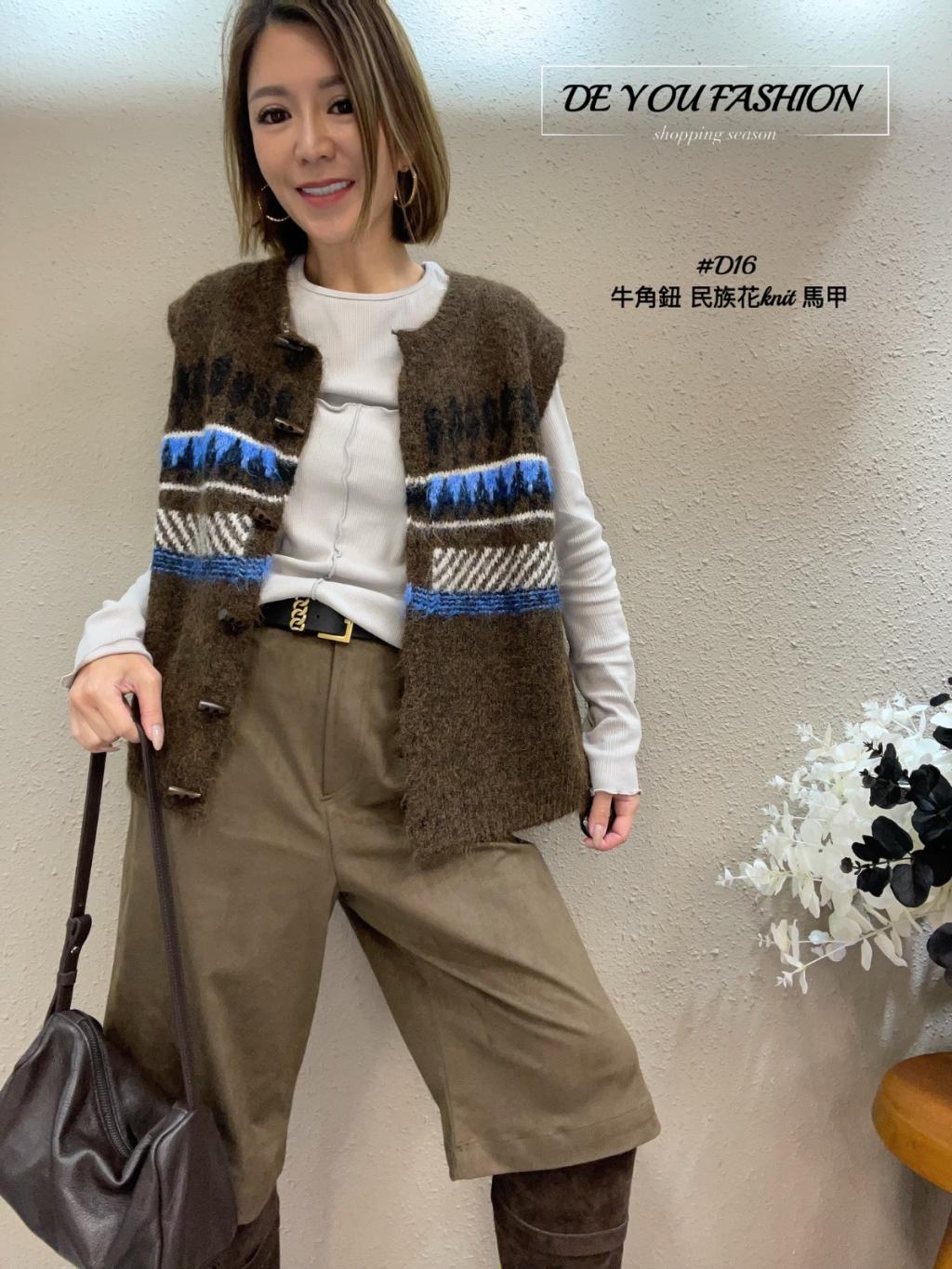 D16 牛角鈕 民族花knit 馬甲