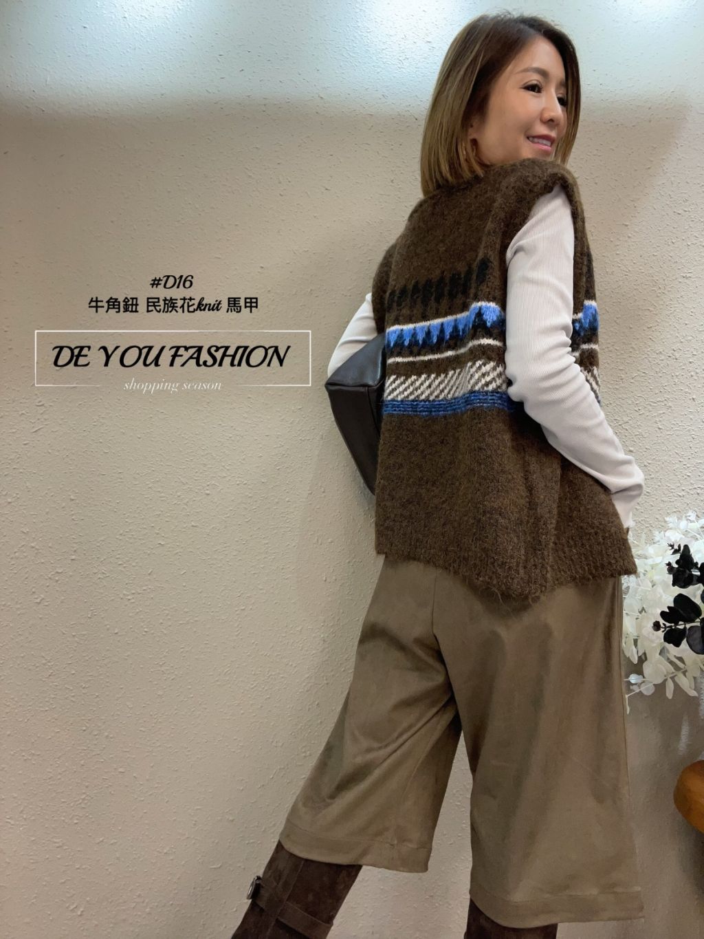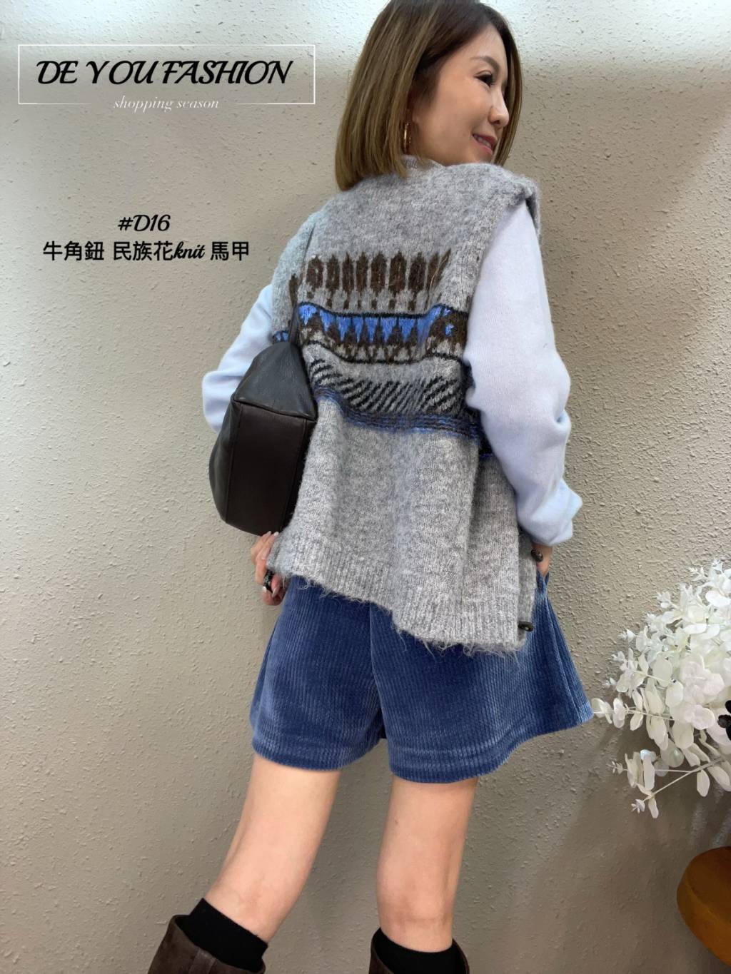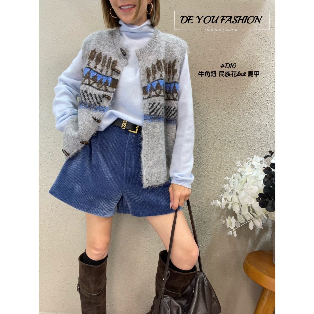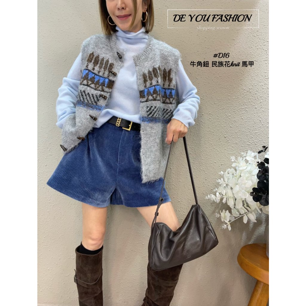 D16 牛角鈕 民族花knit 馬甲