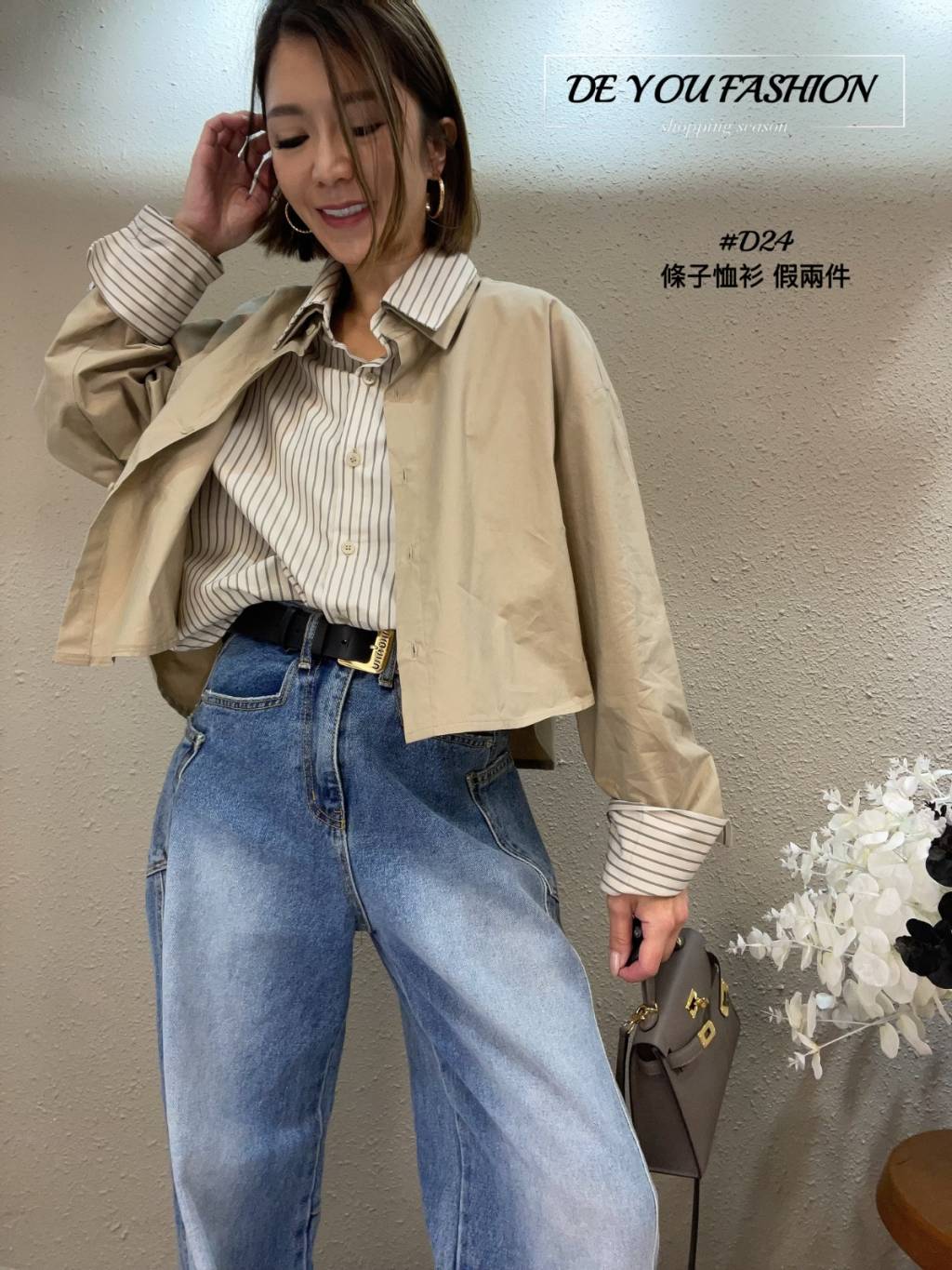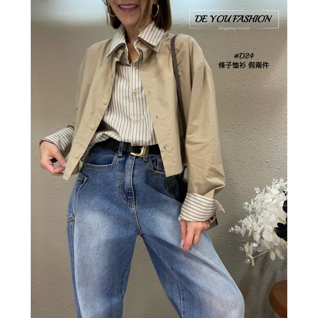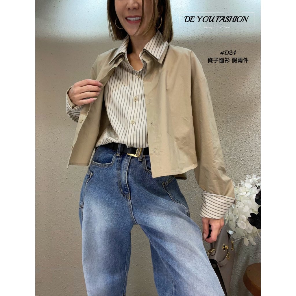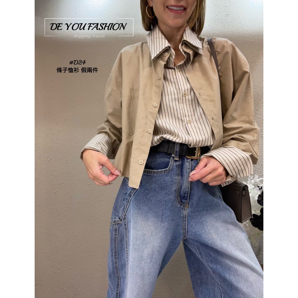 D24 條子恤衫 假兩件