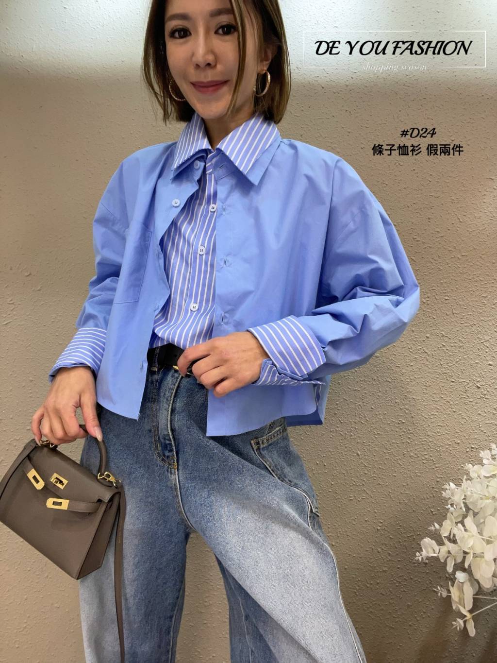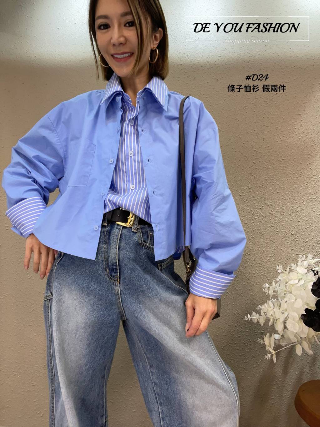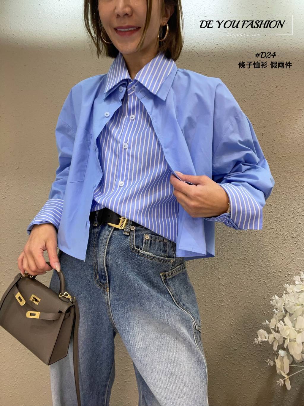 D24 條子恤衫 假兩件