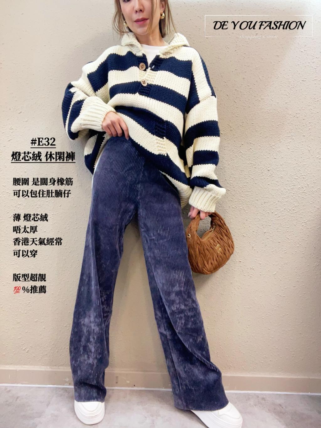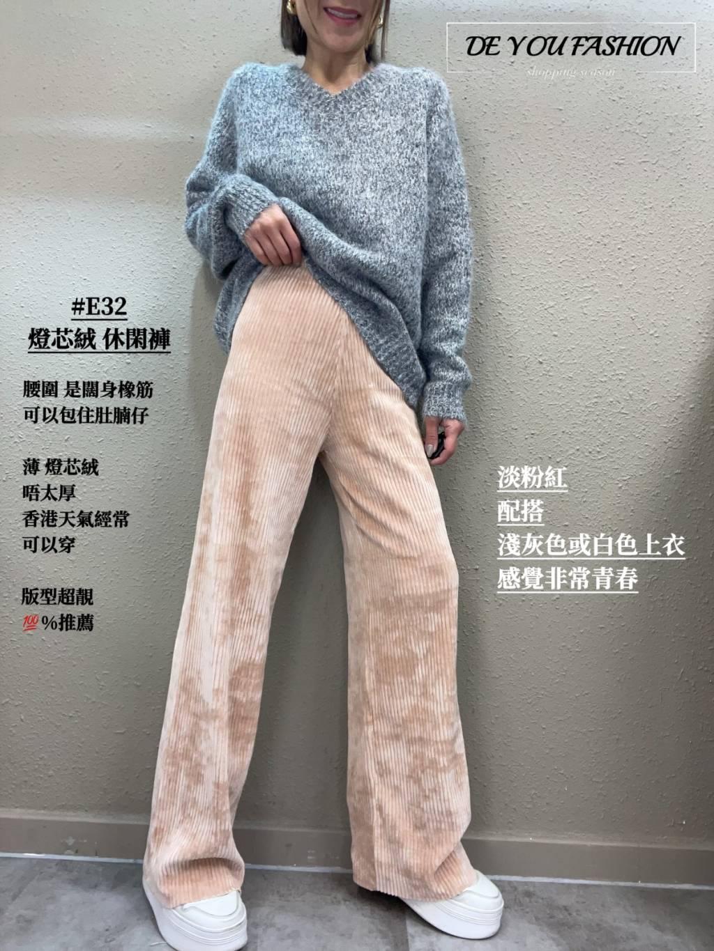 E32 燈芯絨 休閑褲 Free Size橡筋腰(直播價)
