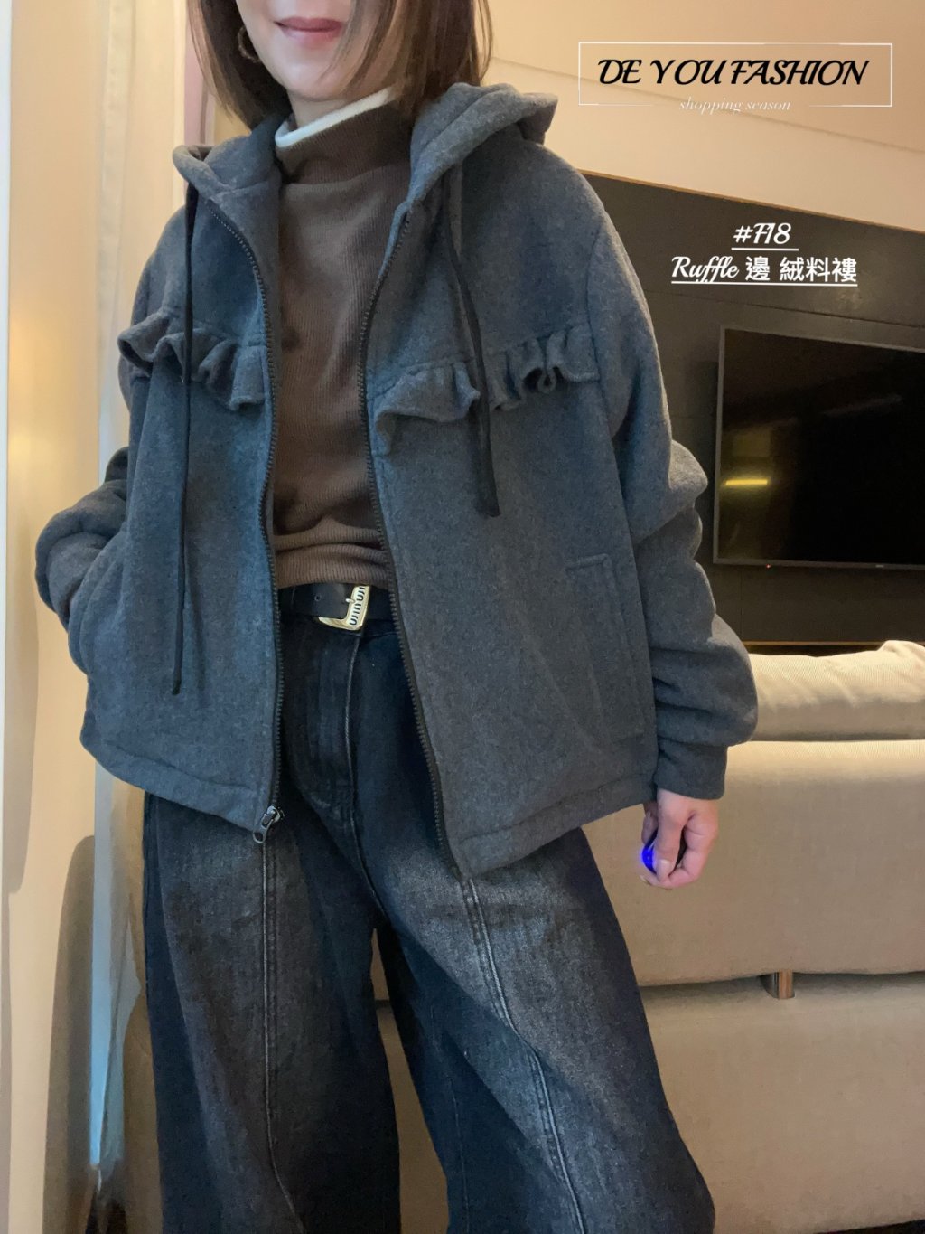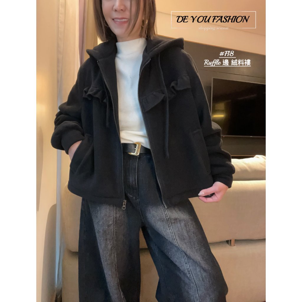 F18 Ruffle 邊 絨料褸(直播價)