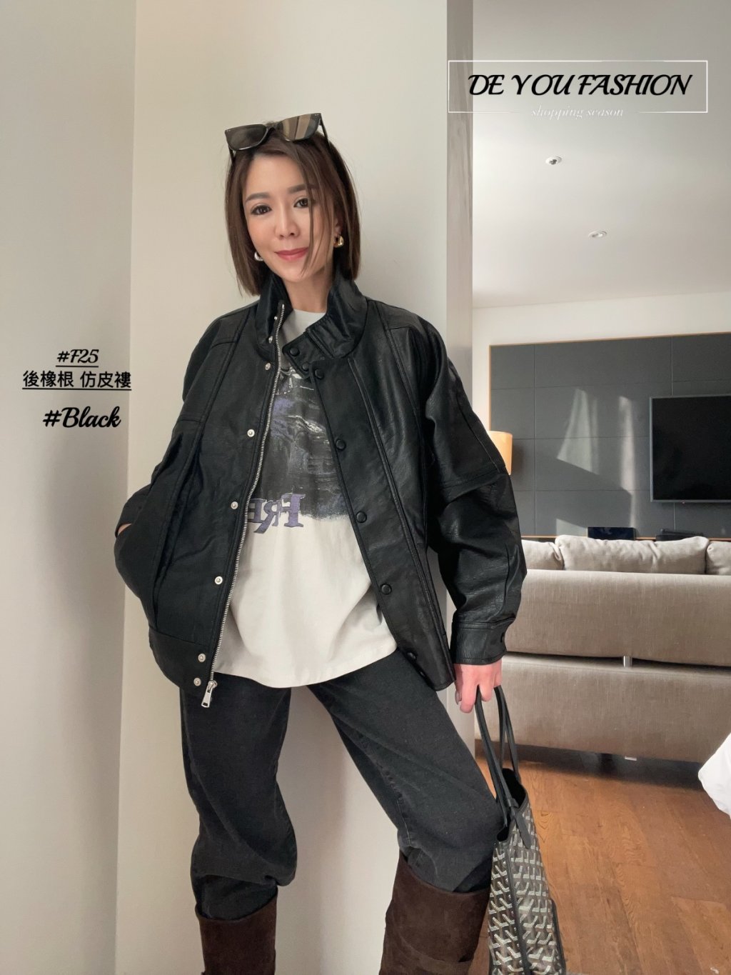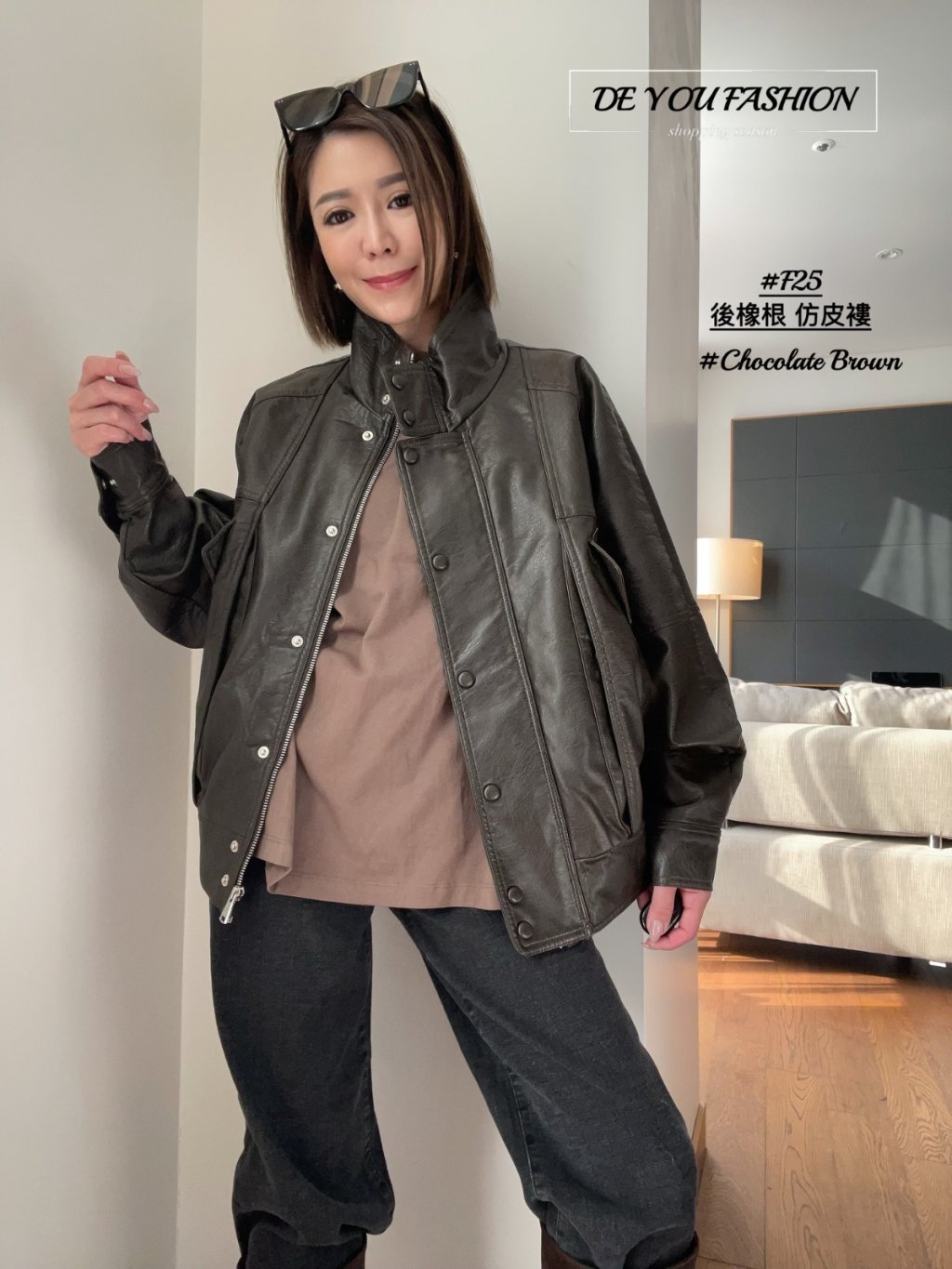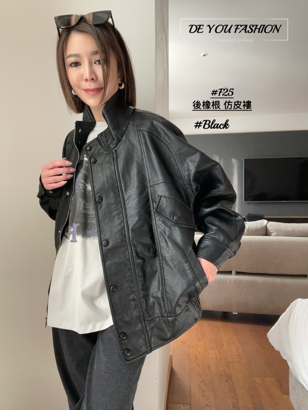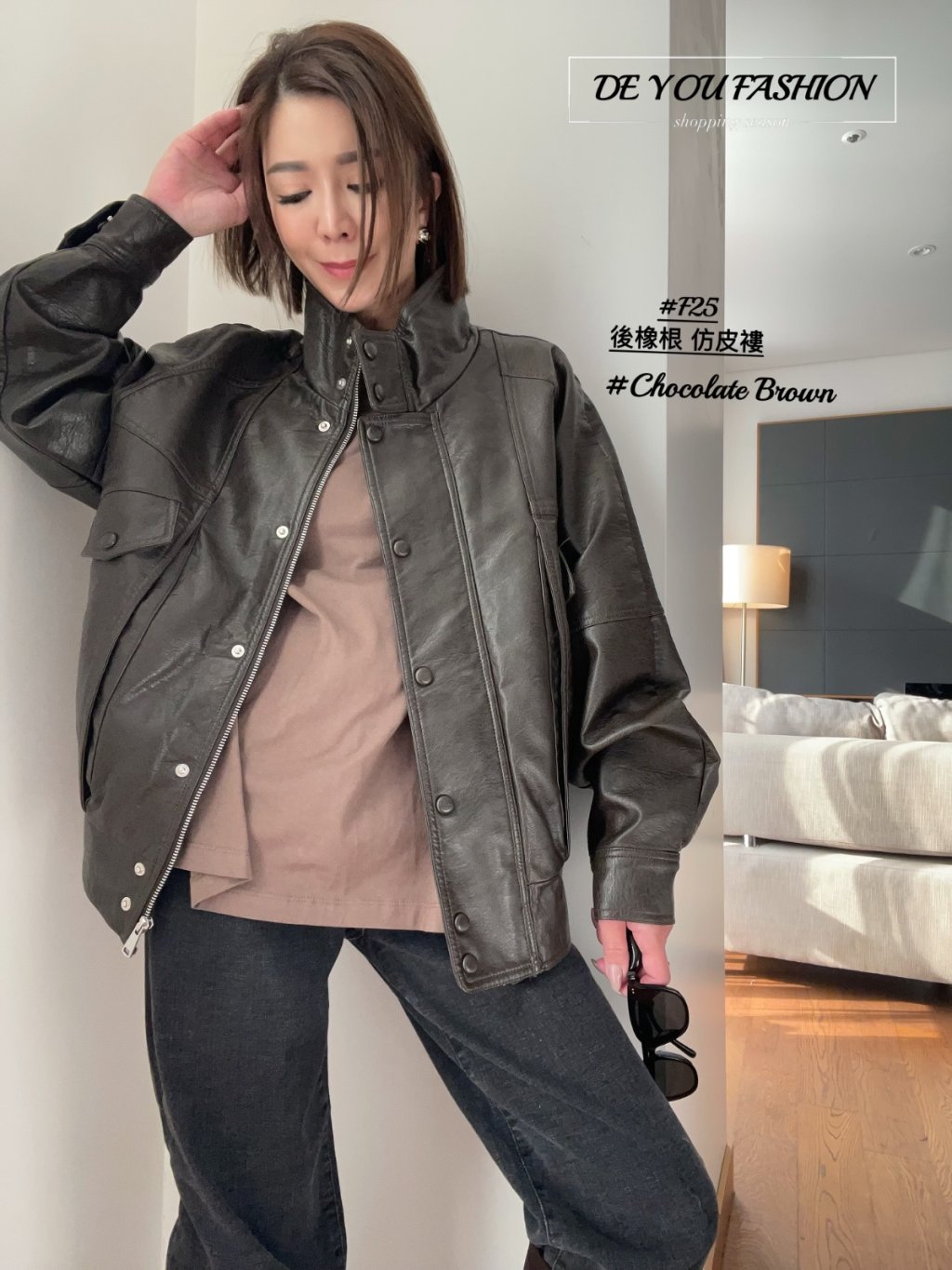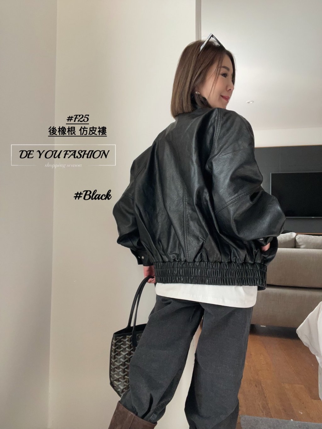 F25 後橡根 仿皮褸(直播價)