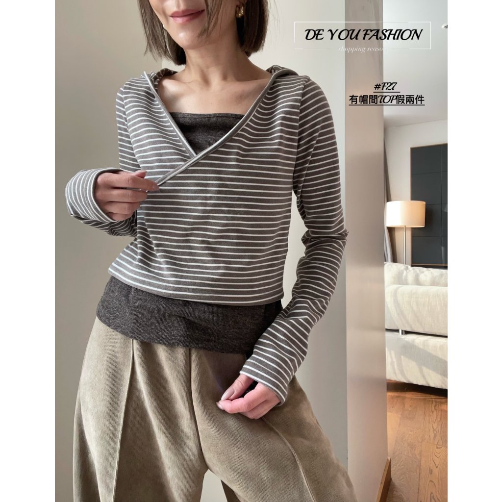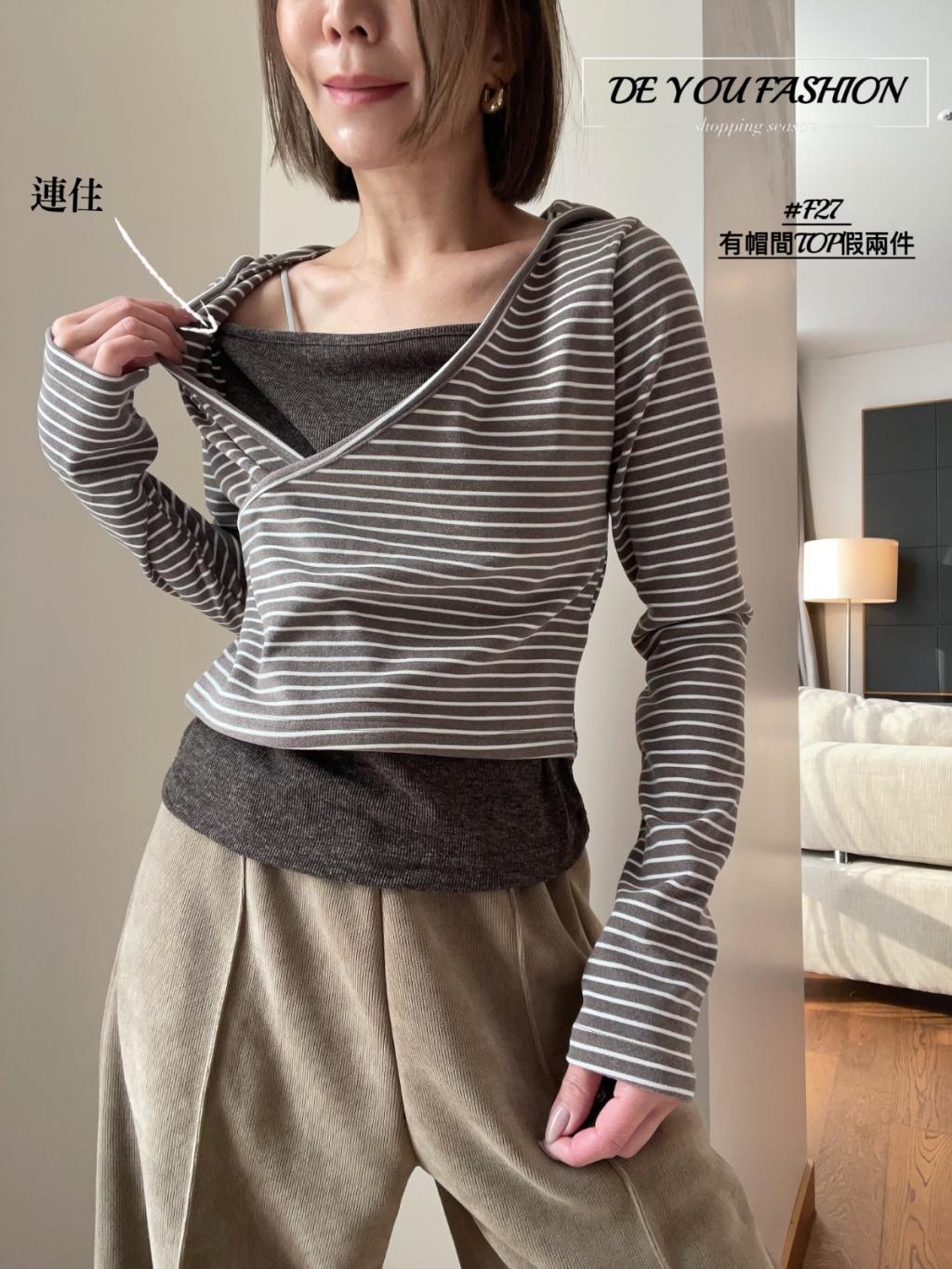 F27 有帽間TOP假兩件(直播價)