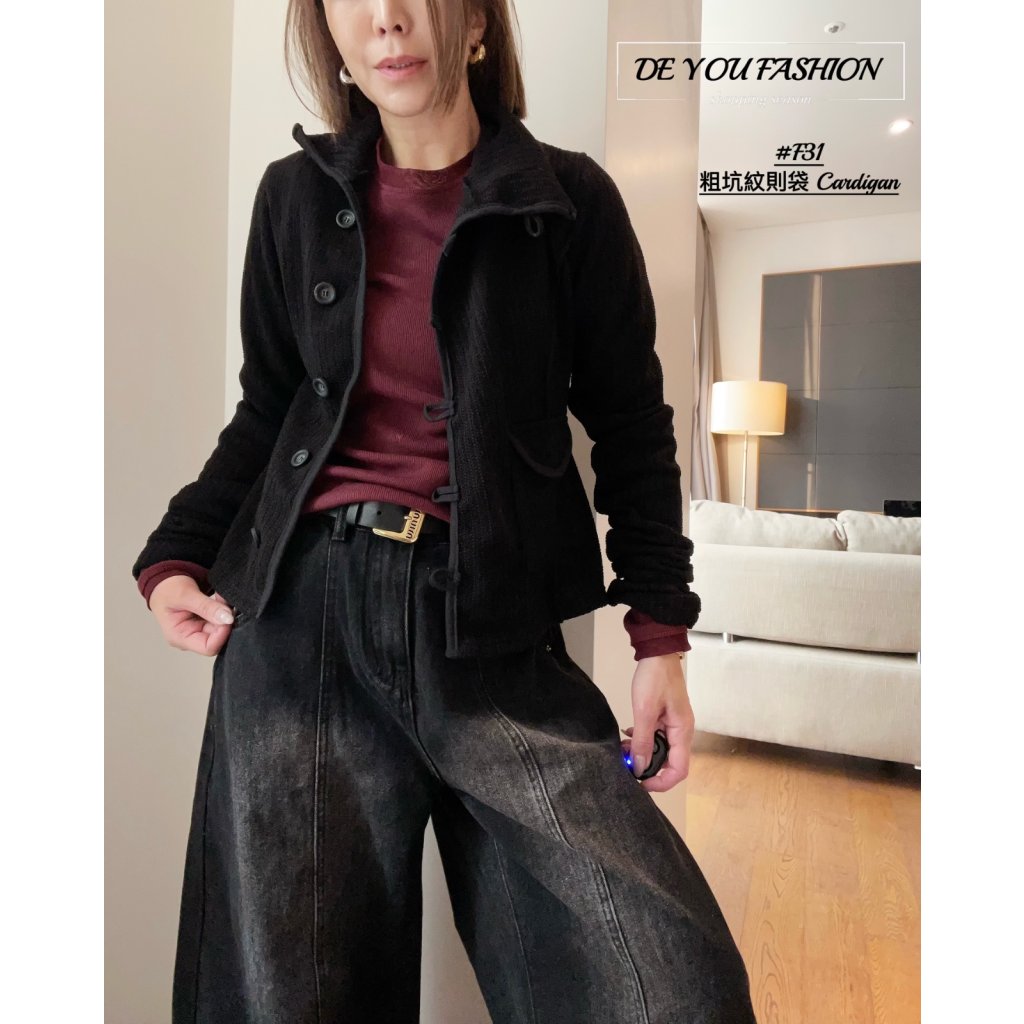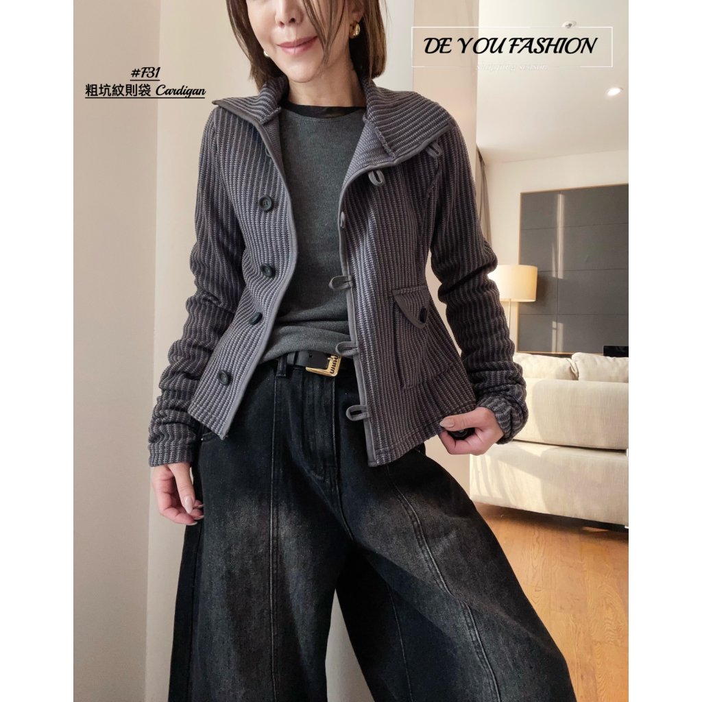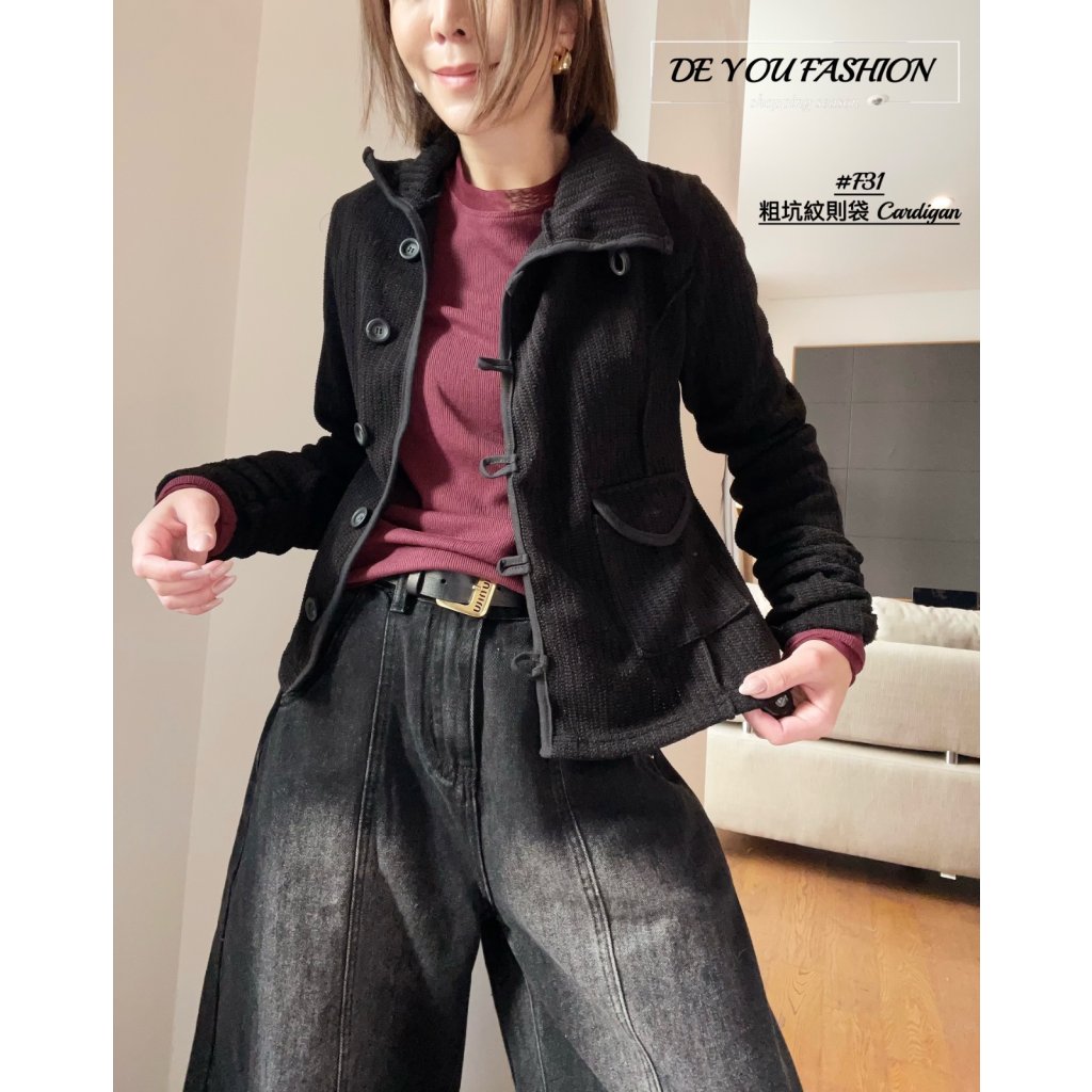 F31 粗坑紋 則袋 Cardigan(直播價)