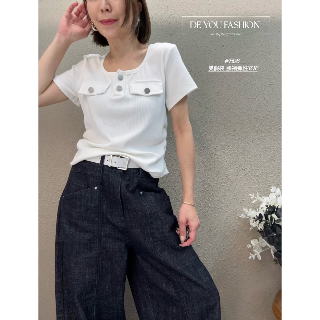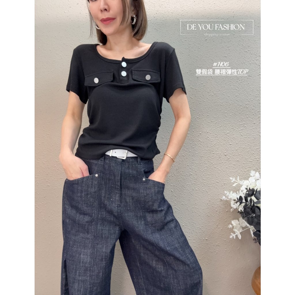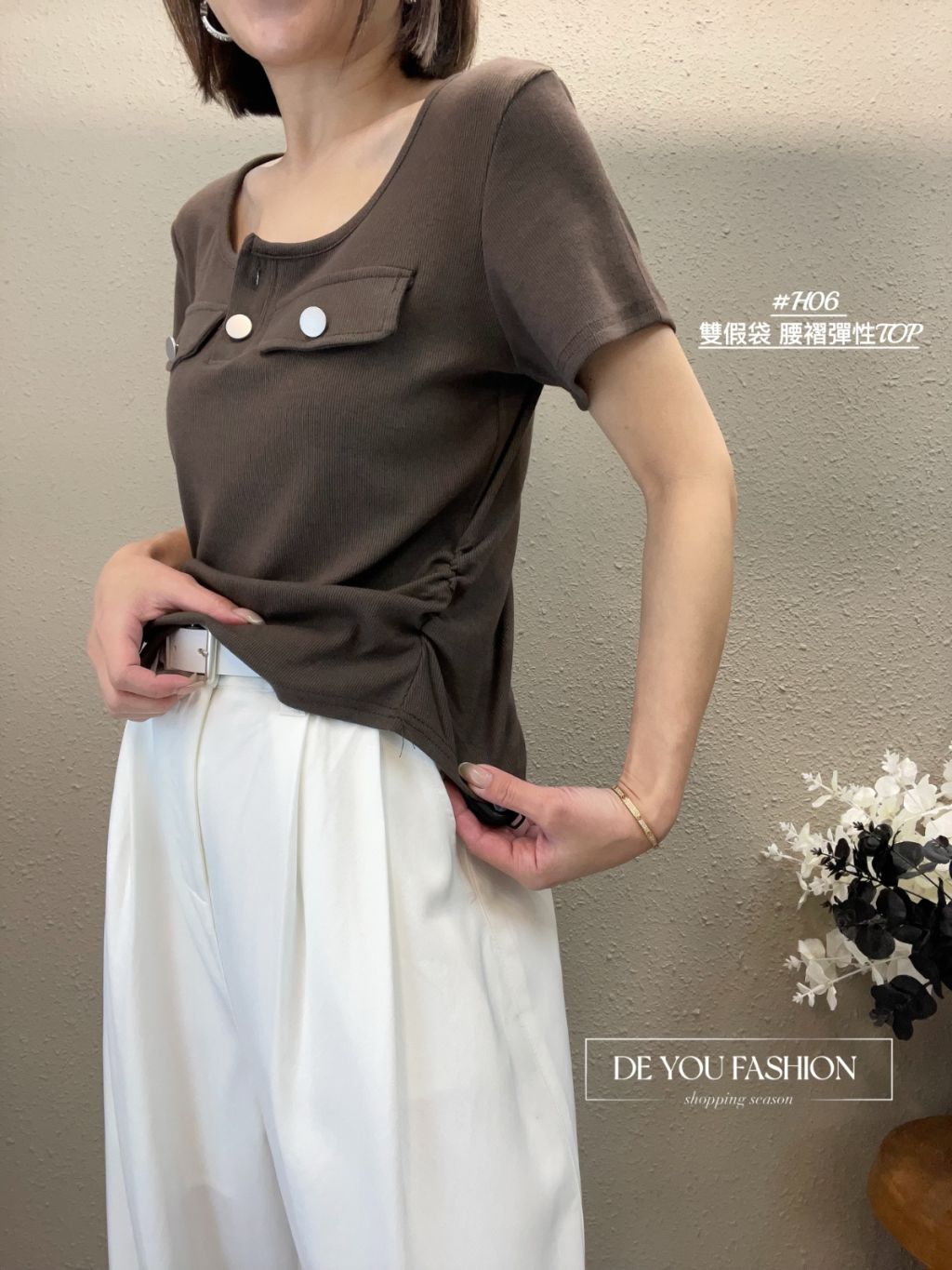 主頁 H06 雙假袋 腰褶彈性TOP(直播價)