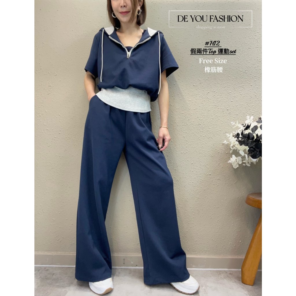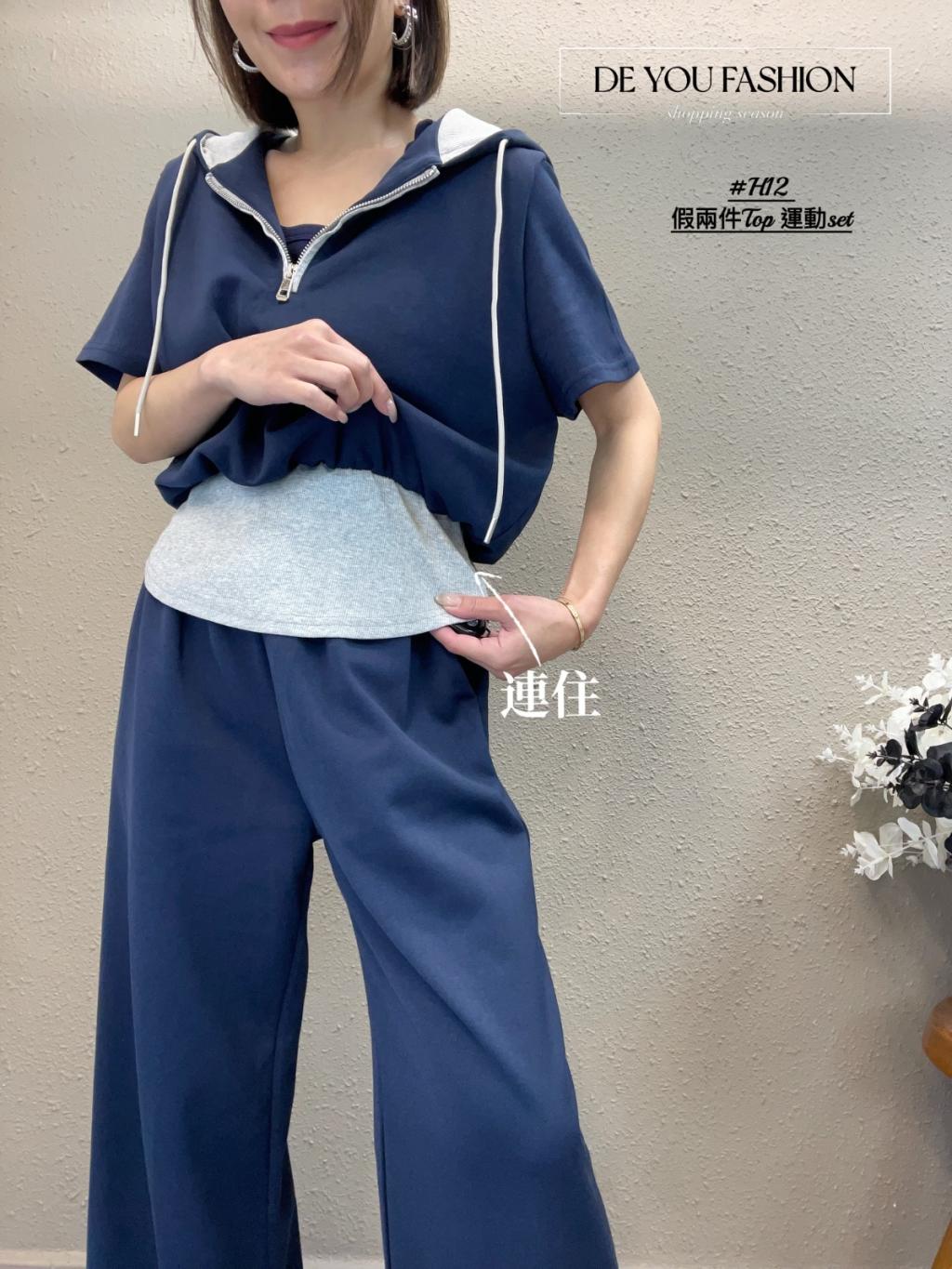 H12(藍) 假兩件Top 運動set(限量發售 不設預購)