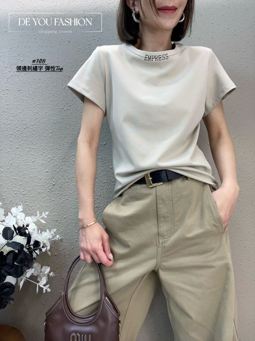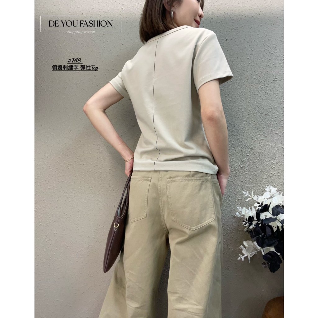 主頁 H18(卡其) 領邊刺繡字 彈性Top(直播價)